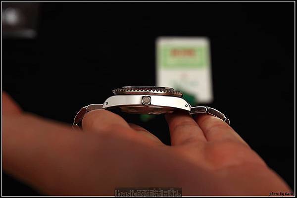 側面配備著排氦活門,沒有錶面上的放大鏡,外觀看起來比同期的黑水鬼16610更專業