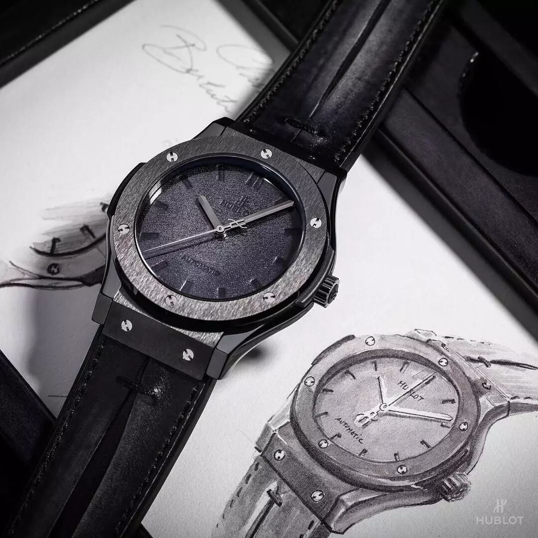 该全新系列腕表拥有与众不同的漆黑色格调,全黑色Venezia手工表带的灵感来源于“划痕艺术”并雕刻有Berluti的“Gaspard”字样。45毫米黑色陶瓷表壳搭载MHUB1100自动上链机械机芯,全黑皮革表盘亦印刻Berluti字样。此款腕表限量典藏500枚。 经典融合Berluti Scritto腕表