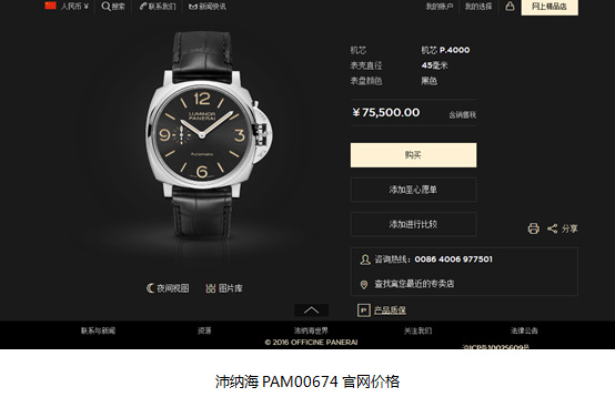 PAM00674是沛纳海Luminor Due系列的进阶款,选择它还有一个原因就是跟我的预算比较吻合,我的初步预算是8万左右,那天在沛纳海网上精品店刚好看到PAM00674售价为人民币75500.00元,手表这个东西,可以尽管往奢侈品价格上靠,但关键是要找到一款符合自己价格预期,并且能满足日常佩戴需要的,尤其对于男人来说,至少是我,平时不喜欢准备很多款表去搭衣服,简单有品位就够了,所以我选择PAM00674的第三点理由来了。
